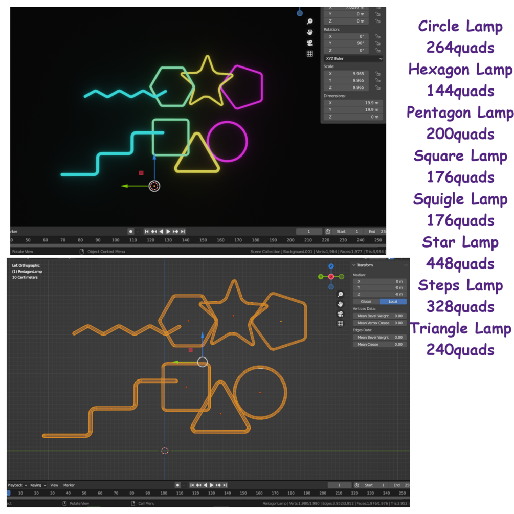 8 optimized Meshes