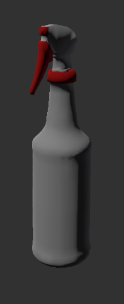 3d model of a spray bottle with a triggerpull blendshape, Uvs for easy changing of the label with included psd, Spray particle system (will need to create animations yourself unless your bones are all named the same as mine)